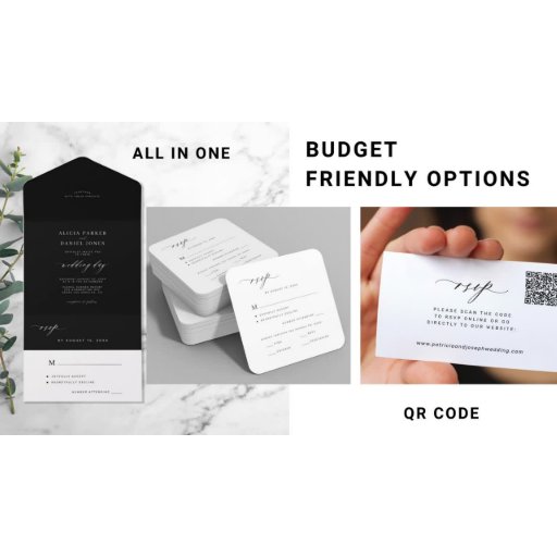 Carte De Correspondance QR code simple mariage noir et blanc RSVP