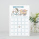 Dégustez vos invités avec ce jeu de bingo amusant de baby shower avec un hérisson d'aquarelle sur un vélo bleu, tirant un wagon à fleurs sous une bannière "Baby Bingo". Les invités remplissent chaque carré d'idées cadeaux, puis les marquent lors de l'ouverture du cadeau - d'abord à cinq dans une rangée gagne! Un mariage parfait pour les baby showers à thème jardin, boisé ou garçon.