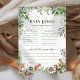 Rendez votre baby shower encore plus spécial avec cette carte de prédictions de Baby shower Whimsical Woodland Animaux! Conçu avec d’adorables animaux de la forêt, de la verdure d’eucalyptus aquarelle et du charme rustique de la forêt, ce jeu vous permet de deviner avec plaisir les détails de l’arrivée du bébé, comme la date de naissance, le poids, la couleur de l’oeil, etc. C’est un souvenir mémorable pour la future mère, qui capte l’amour et l’excitation de ce beau voyage. Avec une élégante typographie calligraphique, des éléments d'aquarelle douce, et un thème de nature d'inspiration boho, cette carte de prédictions baby shower s'intègre parfaitement avec des invitations de douches bébé en bois, décorations de fête et papeterie. Que vous fêtiez "It’s a Girl" ou que vous soyez l’hôte d’un baby shower sans distinction de genre, cette carte de charme ajoute une touche moderne et fantaisiste à votre événement. Parfait pour les baby showers à thème boho, rustique et capricieux, cette carte de prédictions est une façon amusante et interactive d'impliquer les invités tout en créant une mémoire chère pour les parents à être.