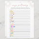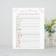 Cette carte de jeu double face dispose de deux versions différentes de pictionary émoji sur l'avant et l'arrière, et est parfait pour un baby shower ou un bébé sprinkle. Ce jeu de pictionnaire émoticônes est doté d'un soleil en terre cuite. Parfait pour une célébration sans distinction de genre. Vos invités peuvent résoudre ces phrases communes de grossesse et de bébé en décodant les émoticônes. CLÉ DE RÉPONSE : 1. Baby shower 2. Jumeaux 3. Triplés 4. Maman doit avoir 5 ans. Brise d'eau 6. Sac pour bébé de l'hôpital 7. Date d'échéance 8. Bouteille bébé 9. Voyage à l'hôpital 10. Couper la corde 11. Pâte au four 12. Pas d'alcool 13. Fille ou garçon ? 14. Faire-part de grossesse 15. Nourriture pour bébés 16. Brûlure cardiaque 17. Maladie du matin 18. Baisers à papillon 19. Baby Moon 20. Cravages de grossesse. Vos invités peuvent résoudre les noms des livres pour enfants et des comptines en décodant les émoticônes. CLÉ DE RÉPONSE : 1. Cinq Petits Singes Qui Sautillent Sur Le Lit 2. Twinkle Twinkle Little Star 3. Itsy Bitsy Spider 4. Poisson arc-en-ciel 5. La Caterpillar Très Affamé 6. Le Lion, La Sorcière & L'Armoire 7. Hickory Dickory Dock 8. J'espionne 9. Oeufs verts et jambon 10. Winnie L'Ourson 11. Charlotte's Web 12. Alice au pays des merveilles 13. Si Vous Donnez Un Cookie À Une Souris 14. Hey Diddle Diddle 15. Il y avait une Vieille Femme 16. Un Poisson, Deux Poissons, Poisson Rouge, Poisson Bleu 17. Où Les Choses Sauvages Sont 18. Goldilocks et les trois ours 19. Les Trois Petits Cochons 20. Le vieux MacDonald avait une ferme. Vous pouvez personnaliser cette conception en cliquant sur "Personnaliser ce modèle" ou si vous souhaitez modifier la police, les couleurs ou organiser les éléments de conception d'une manière différente, vous pouvez cliquer sur "Modifier à l'aide de l'outil de conception".