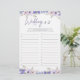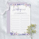 "Flower Mariage A-Z Fête des mariées Game Card" est une activité délicieuse et créative pour les douches nuptiales. Ce jeu présente de belles fleurs violettes qui inspirent les clients à dessiner leurs robes mariages de rêve. Avec son charmant thème floral, ce jeu ajoute une touche d'élégance à la célébration. Laissez vos invités mettre en valeur leur sens artistique et leur imagination avec ce jeu de douche nuptiale amusant et engageant!