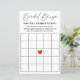 Ajoutez un peu de plaisir à votre douche nuptiale qui sera certainement un succès avec tout le monde. Donnez à chaque invité une carte et demandez-lui de remplir les carrés avec leurs meilleures devis sur ce que la mariée recevra, puis de leur faire marquer les carrés qui correspondent à l'ouverture des cadeaux. Personnalisez en ajoutant le nom de la mariée et tout texte personnalisé. Utilisez le papier à valeur pour faciliter l'écriture. Le design simple en noir et blanc de la carte de jeu s'adapte à n'importe quel thème ou décor de douche, le coeur rouge de la carré du centre ajoute un accent romantique qui est la touche parfaite pour cette journée spéciale !