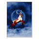 Une joyeuse carte de Noël montrant un renne volant à travers les nuages et passant la lune. Une bonne carte à envoyer par une entreprise.