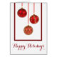 Carte de Noël personnalisée avec des ornements rouges et or.