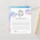 Cartes de conseils de nuit de date de fiançailles / mariage élégantes et rêveuses sur le thème de cloud nine avec une illustration aquarelle d'un ciel rose, violet et bleu avec des étoiles et des nuages. Demandez aux invités de remplir cette carte pendant la douche. Ce sera un excellent souvenir !