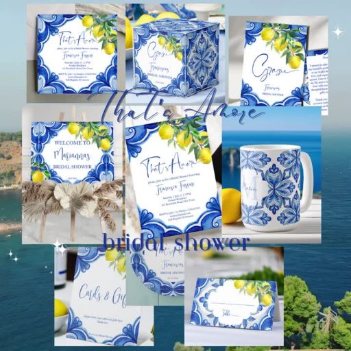 C'est Amore Bleu Carreaux de maiolique citrons vintage Italien douche de mariée mariage cartes de table, Méditerranéen thème douche de mariée citron douche de mariée décor de table
