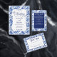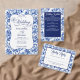 Une carte mariage avec un décor de toile fleurie bleue et blanche.