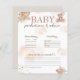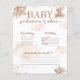 Cette carte de conseil et de prédictions sur le baby shower boho, mignonne et neutre pour le genre, présente un mélange d'accents rustiques vintages dans des couleurs chaudes pastel comme le beige, l'ivoire, le vert et le marron. Un adorable ours en peluche, des nuages, de l'herbe pampa, des feuilles de palmiers et des fleurs créent une atmosphère cosy et accueillante. N'oubliez pas d'explorer la collection complète !