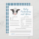 Carte de prédictions et de conseils pour bébé à thème de vache mignonne avec des illustrations de veau. Un jeu parfait à jouer pendant la douche et qui sera certainement un excellent souvenir ! La carte demande aux invités de prédire à quoi ressemblera le bébé.