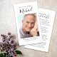 Cette carte de prière commémorative peut être remise en souvenir lors d'une célébration de la vie ou d'un service funéraire ou en hommage spécial à ceux qui n'ont pas pu y assister. Cette carte peut être personnalisée avec une photo préférée et votre choix de prière ou de poème.