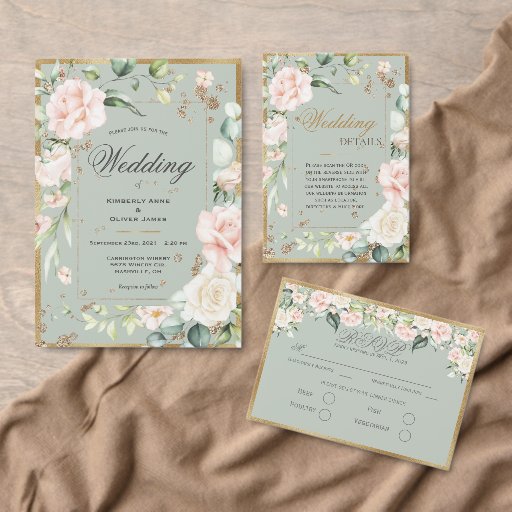 Elegant Sage Green Pink & GoldConçu par Cathy Stevenson