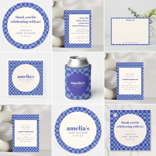Modern Blue Abstract Checkerboard Baby ShowerConçu par Opal Ellery