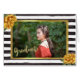 Carte de remerciements de graduation avec photo, rayures d'aquarelle noir et blanc et roses or