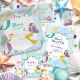 Carte de remerciements pour une fête d'anniversaire de sirène qui peut être personnalisée. La carte a un design coloré et fantaisiste correspondant à l'invitation dans la même collection.