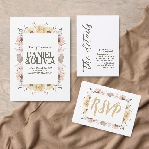 Carte de Remerciement Mariage Floral Couleur Pastel