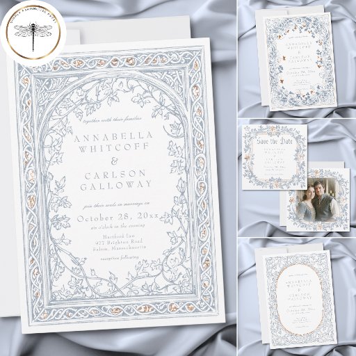 Medieval Fantasy Frame Blue Gold Etching WeddingConçu par Kathe Santillo
