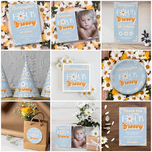 Retro Four Ever Groovy Boys 4th BirthdayConçu par Lizzy Fox