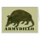 Ce produit est parfait pour le tatou/enthousiaste militaire, ou pour n'importe qui qui aime le jeu de mot. Il comporte un tatou avec un casque d'armée et une peau camouflée. Sous est le texte "Armydillo". C'est une carte pour n'importe quelle occasion !