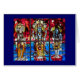 Cette affiche est une reproduction de la fenêtre en verre teinté de trinité conçue et créée pour la maison de Bikram Choudhury. Elle se compose de trois panneaux en verre souillé - seigneur Brahma, seigneur Vishnu, et seigneur Shiva.