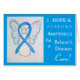 L'ange gardien salue ou la carte de note présente l'image d'une peinture d'ange ruban bleu clair de conscience. La carte indique : "J'espère et je soutiens la sensibilisation pour un traitement de la maladie de Behcet's!" Ajoutez vos propres mots ou message optionnels à la carte de voeux pour les cartes pour notes de sensibilisation à l'art de l'ange personnalisé ! Vous pouvez également supprimer le texte d'une carte d'ange d'art uniquement. Les cartes de voeux d'art de peinture d'ange bleu clair peuvent être customisées de messages personnalisés pour faire une grande prise de conscience cause des cartes d'art pour les collecteurs de fonds, les cadeaux de sensibilisation, ou d'autres événements spéciaux. Donnez cette carte d'art ange comme un cadeau de ruban de conscience pour toute occasion.