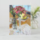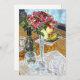 Table avec vin verre et vin bouteille et fleurs dans vase