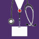 Carte de diplôme d'école d'infirmières unique avec des uniformes d'hôpital violets, un stéthoscope et une illustration drôle de couteau suisse. Pour personnaliser pour l'infirmière, modifiez le texte pour ajouter son nom.