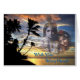 Une belle carte d'un coucher du soleil tropical avec les couples divins Krishna et Radha semblant dans le ciel bénir vos amis et aimé.