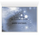 Une fille blonde couchée à travers une moto à hélicos avec des étoiles et des nuages dans l'arrière - plan. Une belle carte d'anniversaire pour les amateurs de moto.