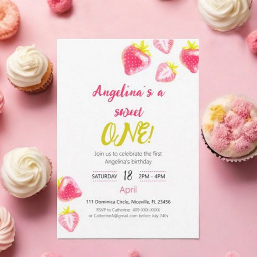 La Carte Flat Merci 1er Anniversaire présente un design délicat et sucré de fraises.