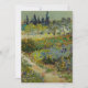 Jardin à Arles par Vincent Van Gogh, huile sur toile 1888, est une peinture de paysage d'un petit sentier à travers un vaste jardin de parterres de fleurs sous un ciel ensoleillé, avec arbres fruitiers, arbustes, cyprès et bâtiments ruraux français dans l'arrière - plan. Avec des coups de pinceau variés qui transmettent la forme, la croissance et le mouvement des formes de paysage, appliqués directement à la toile nue en dabs de couleur pure, Van Gogh construit une composition vivante qui capture la vie intérieure de son motif fleuri. Ici, l'artiste a dépassé les leçons de l'impressionnisme qu'il a absorbé à Paris et les marques de son style mûr qu'il a développé dans le sud de la France. Vincent Van Gogh (1853 - 1890) était un peintre hollandais du mouvement post-impressionniste connu pour son dessin audacieux et expressif, ses coups de pinceau tourbillonnants et ses couleurs intenses et rehaussées. Au début de l'âge adulte, Van Gogh a travaillé comme marchand d'art, enseignant et pasteur avant de reprendre l'étude à temps plein de dessin et de peinture à la fin de la vingtaine. Influencée par Rembrandt, l’école des Réalistes du XIXe siècle et Barbizon, les premières peintures de Van Gogh présentaient des études sur les ouvriers et les paysans dans des tons de terre sombres. Déménageant en France en 1886, Van Gogh rencontre les innovations surprenantes des peintres impressionnistes et commence à appliquer leur approche de la couleur et de la matière, qui se poursuit dans le style mature pour lequel l'artiste est le plus connu. Van Gogh a produit des centaines de dessins et de peintures, dont des portraits, des paysages, des natures mortes et des peintures à fleurs, et de nombreux autoportraits qui sont devenus une influence dominante sur l'art moderne du 20ème siècle et en ont fait l'un des artistes les plus populaires de tous les temps.