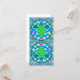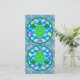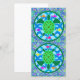 Une tortue de mer verte à la carapace à motifs, contre un motif d'eau/vague bleu, avec plusieurs poissons colorés. Conception circulaire avec bordure verte. Signets de grande taille -8x4 - ou utiliser comme cartes régulières.