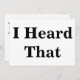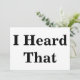Carte blanche standard avec "J'ai entendu ça" dans une grande police noire en gras des deux côtés.
