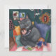 Cette carte postale a été réalisée à la main à l'aide d'aquarelles, de gouache et de crayons. Il raconte une belle histoire d'amour entre une petite fille et son animal de compagnie.
