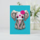 Carte Jour rose de la mort crâne de sucre bébé éléphant