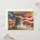A striking artistic depiction of the Liberty Bell set against a flowing American flag. The textured style and patriotic colors capture the spirit of Independence Day, symbolizing freedom, history, and national pride.