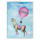 Un lama fantaisiste et fleuri prend son envol, à l'aide d'une montgolfière vintage.