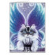 Carte avec Lucy Fairy Cat de Michaeline McDonald d'un mignon petit chat blanc avec rayures noires et grands yeux bleus et ailes bleu et violet brillant. Pour en savoir plus sur l'art de Michaeline, visitez le site www.wisetailsart.com. Copyright de l'oeuvre © Michaeline McDonald.