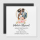 L'invitation personnalisée à enregistrer la date présente l'aquarelle d'un beau couple à la peau brune comme mariée et mariée. Les accents floraux, tout le texte disponible pour la personnalisation, cet invitation mélané a une palette de couleurs pêche et corail.