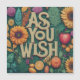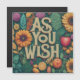 Une carte de remerciements rêveuse avec l'emblématique phrase "As You Wish". Les tons pastel doux créent une atmosphère magique. La carte peut comporter des éléments flornaux délicats ou des personnages fantaisistes inspirés du film. La typographie est élégante et fluide, complétant l'atmosphère romantique globale.