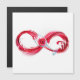 Infinity symbole of continuous stream of red pouring into glass glass glass on white background.