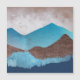 Un magnifique paysage aux textures uniques montrant un paysage de montagne bleu avec un ciel nuageux et des nuances de magenta brun et foncé.
