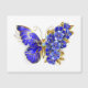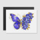 Bijoux, bleu, saphir, papillon aux fleurs pétillantes avec aile décorée de bleu, fleurs précieuses avec feuilles d'or sur arrière - plan blanc.