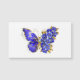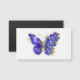 Bijoux, bleu, saphir, papillon aux fleurs pétillantes avec aile décorée de bleu, fleurs précieuses avec feuilles d'or sur arrière - plan blanc.