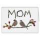 Deux moineaux couronnés d'or perchent sur une brindille de cerise souhaitant à maman une joyeuse fête des mères sur cette carte sucrée.