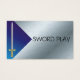 Carte Métallique Bleu et Argent et Epée Médiévale avec modèle de carte de visite dégradé bleu. Les bijoux royaux et l'épée d'or conviennent à un roi. Personnalisable, police, couleurs arrière - plans et plus encore en ligne.