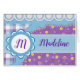 Carte graphique patchwork colorée conçue sur l'avant et le dos avec espace pour un monogramme et un nom personnalisés. Il suffit de modifier les champs de texte dans l'éditeur Zazzle facile. Beau cadeau pour les quilters, les artisans, entre filles. Créé en partie avec des graphiques de Adriana Ferrari sur DigitalScrapDesigns.com