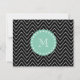 Carte Motif noir Chevron | Monogramme vert à la menthe