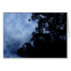 décor bleu mystérieux brumeux... avec silhouette d'arbre. Grand espace disponible pour ajouter du texte personnalisé.