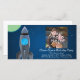Célébrez l'anniversaire du garçon ou l'occasion spéciale avec ce vaisseau-fusée spatial cool dans l'espace. Ciel bleu foncé avec des étoiles et des planètes colorées, et une fusée argentée tirant dans le ciel. Coloré et lumineux. Tous les Designs Copyright © 2012 www.CustomInvitesOnline.com