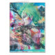 Une écharpe de dentelle noire flotte sur le vent pendant que la belle femme avec les cheveux verts regarde dessus dans la contemplation. Une carte de voeux artistique et unique.